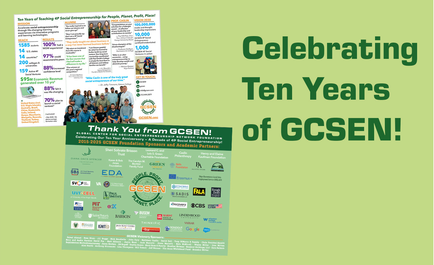 - Sponsor your campus Faculty and Administrator staff for Certification by GCSEN’s Social Venture Research Institute.