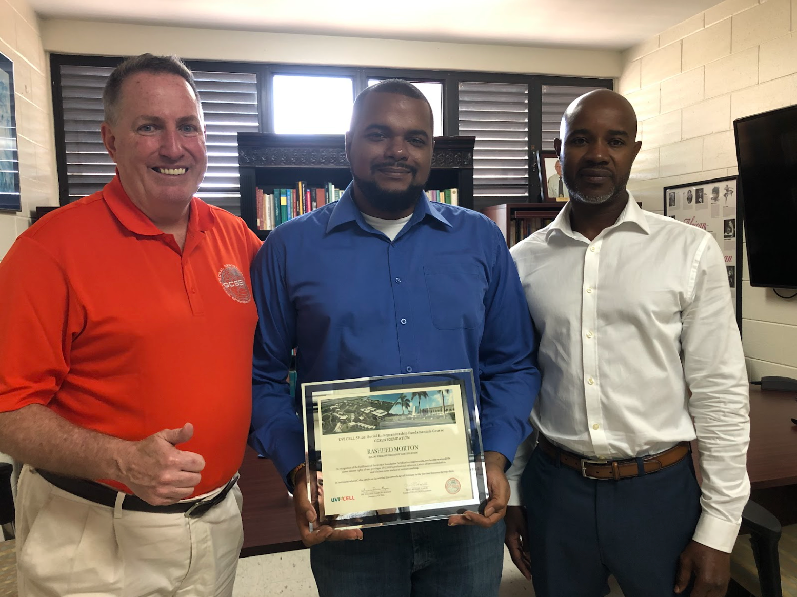 Above: GCSEN CEO Mike Caslin with UVI-Cell (University of the Virgin Islands Center for Excellence in Leadership and Learning) Graduate Rasheed Morton and GCSEN Professor Shawn Smith